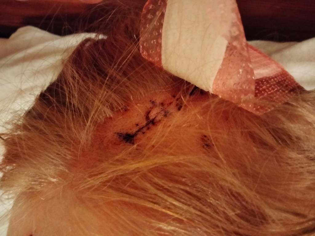 The wound on the head is actually not the worst even if it is horrible. It is somehow included to get wounds during a surgery. It will be covered with bandages for a couple of days, then we can comb over it or Edith could wear a bandana until it is healed. Right now, it’s harder for both Edith and me to see how swollen she is in her face. Edith did not want to look in the mirror when she brushed her teeth and Dad had to brace himself. It may also be that she gets bruises or black eyes in the next few days. But all this will be long gone before we come home to Sweden and Edith will be just as pretty as before. In addition, she will feel better on the inside.