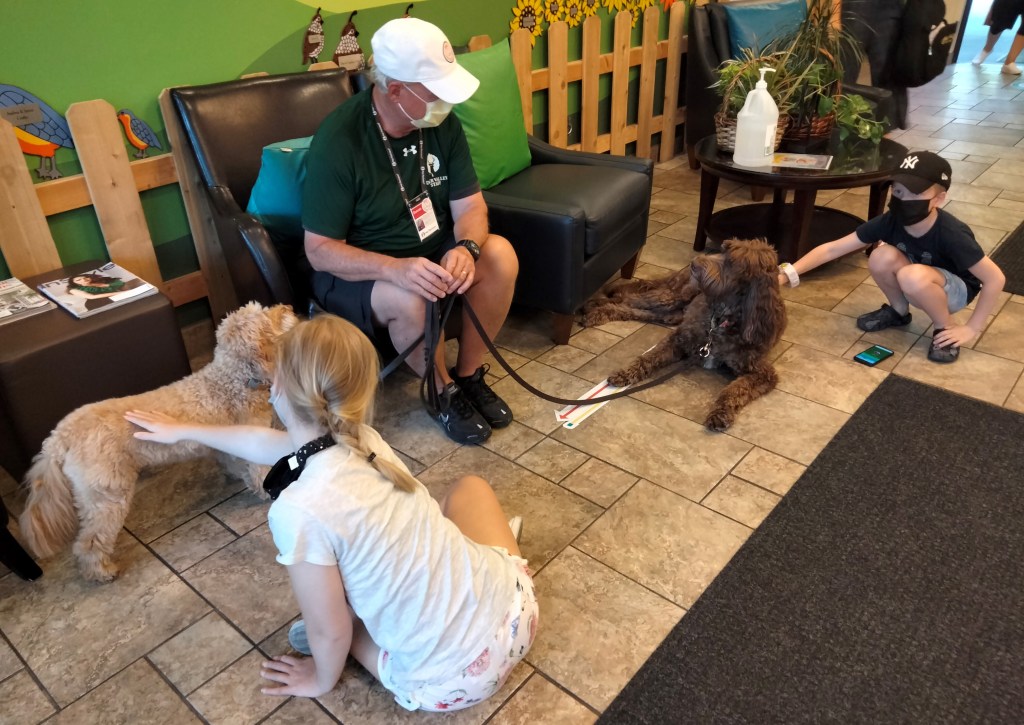 Jag är förresten inte säker på att det är dag 29 i SLC. Men eftersom förra inlägget fick nr 28 så känns det logiskt att fortsätta i den nummerföljden. Igår träffade i alla fall Edith och lillebror Olli och hans syster Oliv. Deras ägare gillar gamla svenska bilar. Han kör en röd Volvo PV och en silvrig SAAB cabriolet när han besöker sjukhuset och McDonalds huset, tillsammans med sina labradoodles. Han har haft ett par P1800 också.