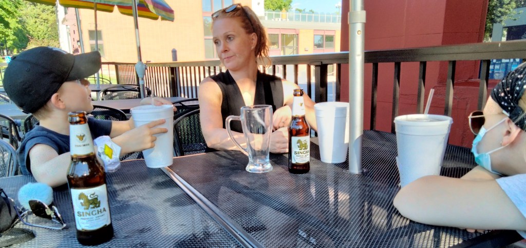 We also finally got to the only restaurant within walking distance from where we live, according to their website SLC’s best Thai restaurant. We ordered two Singhas, panang curry and some spring rolls. Little brother ordered a huge soda and rice, but Edith did not feel well when we arrived so she ate nothing. Tonight, she wants to order from McDonald’s.