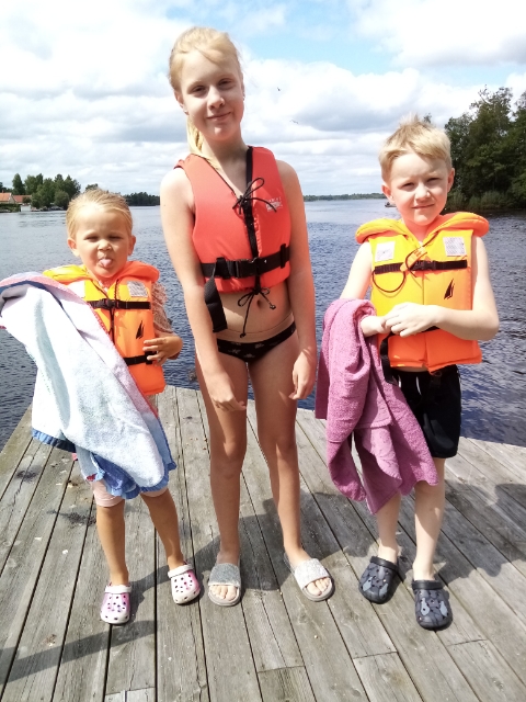 Sommaren innan Edith blev sjuk köpte jag en åkring till min lillebrors båt. Den var ouppackad till denna veckan. Absolut roligast var såklart när åkringen började gräva ned sig i vattnet och pappa trillade i. Men Edith, lillebror och deras kusin hade väldigt roligt när de själva åkte också. I SLC fick Edith använda tummen för att kommunicera med narkospersonalen, här betydde tummen upp: kör fortare!