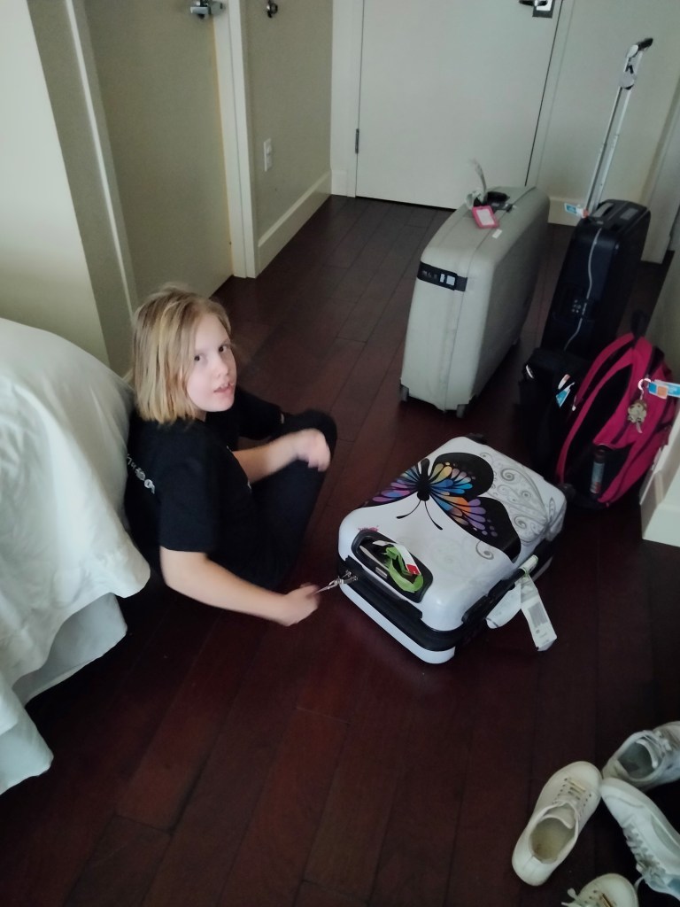 The trip felt longer this time than usual, it felt very long, but it still went relatively well. Edith slept for a few hours on the plane across the Atlantic and the rest of the hours she was spoiled by the cabin crew. She got ice cream from first class, biscuits and chocolate. She also got a pair of Delta wings she can put on her backpack. Once we got to the Ronald McDonald House, Edith fell asleep pretty promptly, even though it was only late afternoon here. At 1 AM we had to wake her up to take the medicine, but she quickly fell asleep again so it was okay.
