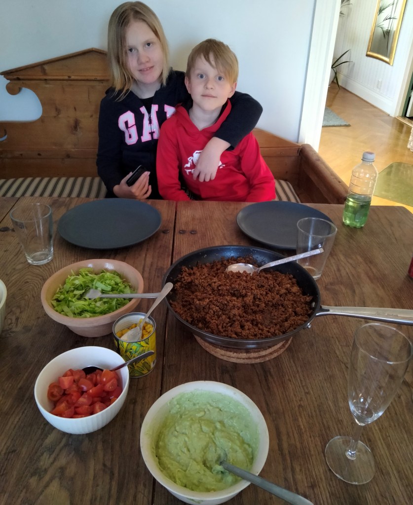 Edith hade beställt tacos till middag igår. Det hade lillebror fixat tillsamman med mormor och morfar.  De stannade tills för någon timme sedan idag också, det gjorde att Ediths mamma och jag kunde vila några timmar i förmiddags. Det var välkommet. Edith sov så mycket på planet till Amsterdam att hon är ganska pigg idag.