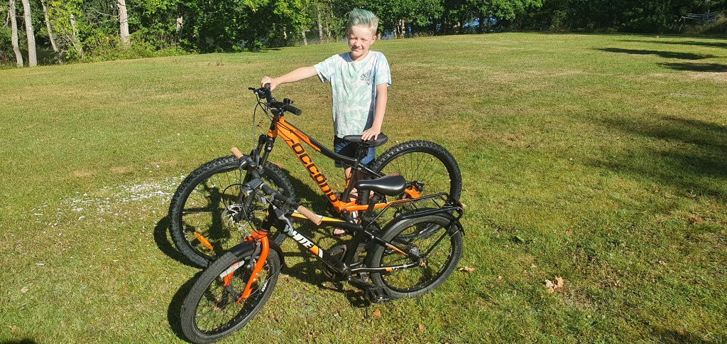 Little brother’s birthday was on Tuesday. So far in his nine-year life, it has always been great weather on his birthdays. This was no exception, it was almoast 90 degrees Fahrenheit and sunny. We probably try to suppress our bad conscience because little brother so often has to wait or adapt to Edith’s illness, for our failing energy to be committed class or sports parents, because life is as it is right now, with a little too much necessary and unnecessary gadgets. Or is it just the way it is today, that some children today have too many things. In any case, little brother deserves all the presents. He got a brand new 26 inch mountain bike with eight gears and a lot of other nice things from the rest of the family and then he got to decide the menu. I’m not sure that many other nine-year-olds choose homemade falafel, but he has for a few years now. Falafel is a bit of a watershed, a some people aren’t too keen, so we made homemade kebabs too and just in case had a few burgers ready too. Cake too, of course, with Pokemon frosting. So there was a lot of kitchen work in the days before and during the party, but little brother was satisfied. To our great delight, Edith was quite alert throughout the party and looked after and played with her cousins kids.