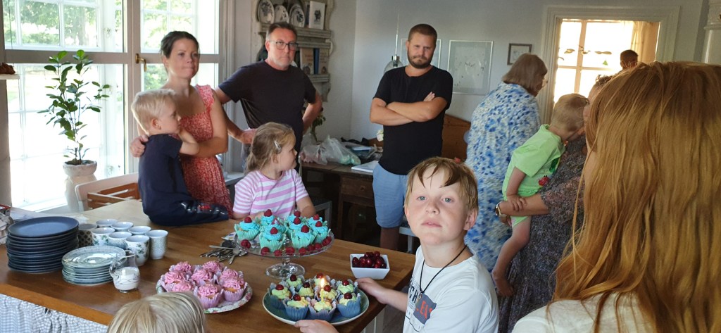 Little brother turned 10 a week ago. It is always sunny and warm on his birthday, at the party everyone usually looks for shade, this year we mostly had to sit indoors. Little brother was at least happy that we were home, he had worried that we would be in the US this time. The rest of us would probably have preferred it, not because we didn’t want little brother to have the best possible birthday, but because a trip to the USA would have meant that we had started the next step. Edith joined and sang for little brother in the morning, but before the guests arrived she fell asleep and slept the whole party.