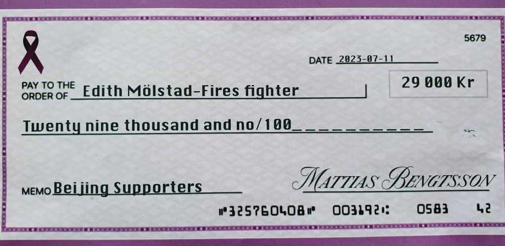 Edith’s uncle Mattias works and lives with his family in China. For a couple of years they had difficulty traveling home to Sweden because of the pandemic, but a few weeks ago they were at our house to celebrate little brother’s birthday in advance and to surprise Edith with a contribution to her journey. Uncle Mattias and his family had made a fundraiser among colleagues and friends in China. Together they had raised 29,000 Swedish kronor (almost 3,000 dollars). Many thanks to Beijing Supporters for your generous contribution, it means a lot to us and makes Edith’s journey a little less difficult.