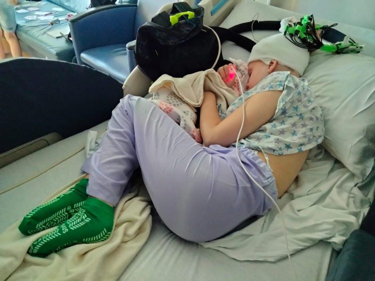 When we arrived yesterday, little brother and I took the RMC shuttle to the hospital and left the CD with the CT scan at Dr. Bollo’s office. Later in the evening he confirmed that it was exactly as he wished. Today Edith sleeps, but she sleeps peacefully. We hope she will have time to gather some strength before it is time for SEEG surgery next week.